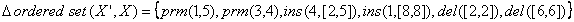 7. Сравнение упорядоченных множествУпорядоченные множества являются одновременно специализацией и множеств, и списков, поэтому процедуры сравнения, рассмотренные выше, могли бы применяться и для этого случая. Однако в силу сочетания свойств упорядочения и уникальности элементов, видится более содержательный способ представления и расчета изменений для данного типа коллекций не только в виде операций вставки и удаления, но и операций перестановок. Пусть