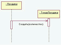 См. пример к паттерну "Информационный эксперт" в п. 3.1.4, необходимо определить, какой объект должен отвечать за создание экземпляра "ТоварПродажа". Логично, чтобы это был объект "Продажа", поскольку он содержит (агрегирует) несколько обьектов "ТоварПродажа".
