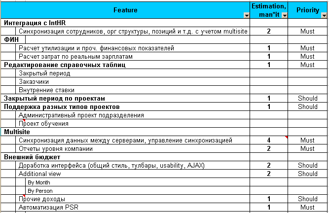Пример Product Backlog