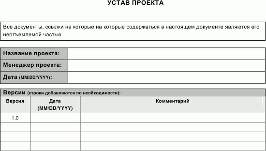 - Устав проекта – документ, формализующий договоренности со спонсором в ходе инициации проекта.