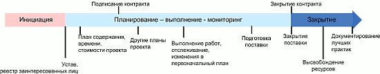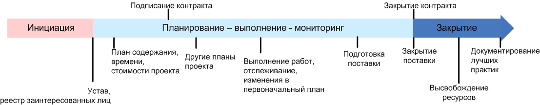 Обратите внимание, что согласно рисунку – закрытие контракта также не означает автоматически завершение проектной деятельности.