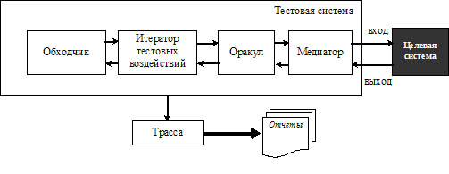 Рисунок 2. Схема работы тестовой системы, разработанной по технологии UniTesK.