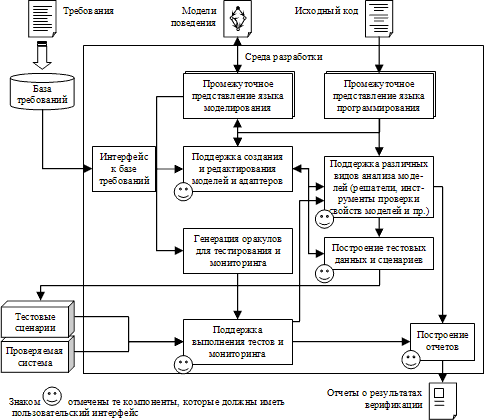 Чтобы в архитектурный каркас тестирования на основе моделей вложить другие синтетические методы верификации, необходимо лишь добавить модули для анализа исходного кода проверяемых компонентов — все остальные необходимые модули в нем фактически уже имеются (см. также [60]).