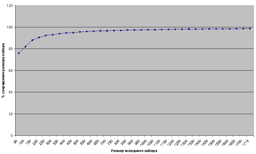 Процент сокращения набора тестов.
