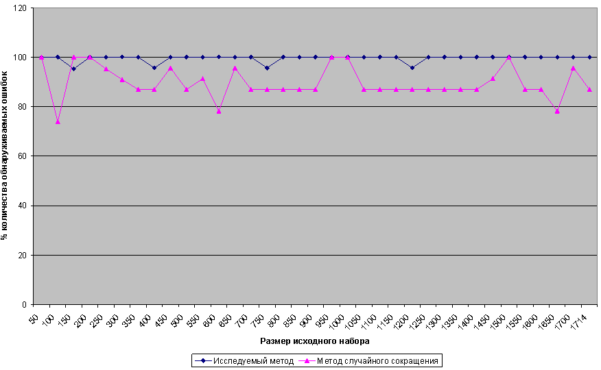 Процент обнаружения ошибок наборами тестов.