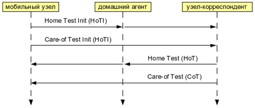 Рис. 3. Процедура обратной маршрутизируемости (return routability procedure) Протокол Mobile IPv6 включает в себя несколько вспомогательных служебных процедур обмена сообщениями для мобильного узла: Generic Movement Detection, Dynamic Home Agent Address Discovery и Mobile Prefix Discovery. Эти процедуры используют сообщения протокола ICMPv6. Процедура Generic Movement Detection позволяет отследить перемещение мобильного узла при помощи средств протокола Neighbor Discovery [6]. Для двух оставшихся процедур вводятся четыре новых типа сообщений протокола ICMPv6 [7]. Процедура Dynamic Home Agent Address Discovery позволяет узнать адрес домашнего агента в то время, когда мобильный узел находится за пределами домашней сети. Процедура Mobile Prefix Discovery позволяет мобильному узлу узнать об изменении префиксов в домашней сети в то время, когда мобильный узел находится за ее пределами, и, тем самым, принимать участие в смене префиксов домашней сети (Network Renumbering). 3. Инструмент CTesKДля построения тестового набора в данной работе использовался инструмент CTesK, который позволяет эффективно распараллелить разработку тестового набора и автоматизировать разработку тестовых сценариев. Ниже приведено краткое описание возможностей этого инструмента и обзор технологии UniTESK, которую он реализует.В инструменте CTesK объектом тестирования является целевая система. У этой системы имеется набор интерфейсов, с помощью которых она взаимодействует с окружением. Набор этих интерфейсов изначально определен и специфицирован. Все требования, которые предъявляются к системе, накладываются на наблюдаемые действия системы, которые можно отследить через интерфейсы ее взаимодействия с окружением. Эти требования не затрагивают внутренней реализации системы, т.е. тестирование производится по принципу «черного ящика». При использовании инструмента CTesK требования, предъявляемые к целевой системе, должны быть описаны на формальном языке SeC, который является спецификационным расширением языка C. Впоследствии из таких требований автоматически генерируется исполняемый код, который используется в процессе тестирования. Взаимодействие с целевой системой осуществляется при помощи стимулов и реакций. Стимулами называются средства, при помощи которых можно передавать целевой системе какую-либо информацию. Целевая система может непосредственно возвращать некоторый ответ на стимул, а также изменять свое внутреннее состояние. Такой ответ и изменение состояния, если имеется доступ к состоянию системы, возвращаются в тестовую систему, и производится проверка соответствия поведения системы наложенным на нее требованиям. Требования описываются на формальном языке в виде постусловий. Для стимулов в виде предусловия описываются ограничения, при которых можно вызывать данный стимул. Дополнительно могут накладываться ограничения на возможные значения данных определенного типа в виде инвариантов. Некоторые следствия работы системы и результаты воздействия на нее определенных стимулов могут наблюдаться не сразу, а после завершения внутренних процессов. Такое поведение приводит к тому, что реакция на стимул поступает наружу через какое-то время после воздействия на систему одного или нескольких стимулов, или может даже проявляться без воздействия стимулов на систему. Такую информацию не во всех случаях можно охарактеризовать как ответ на какой-либо стимул, и она
