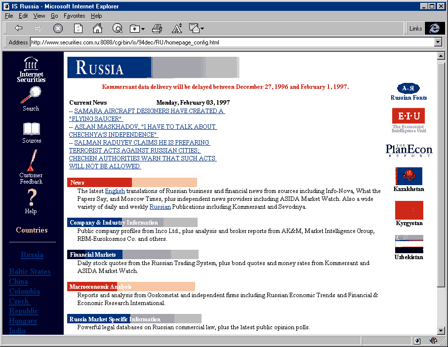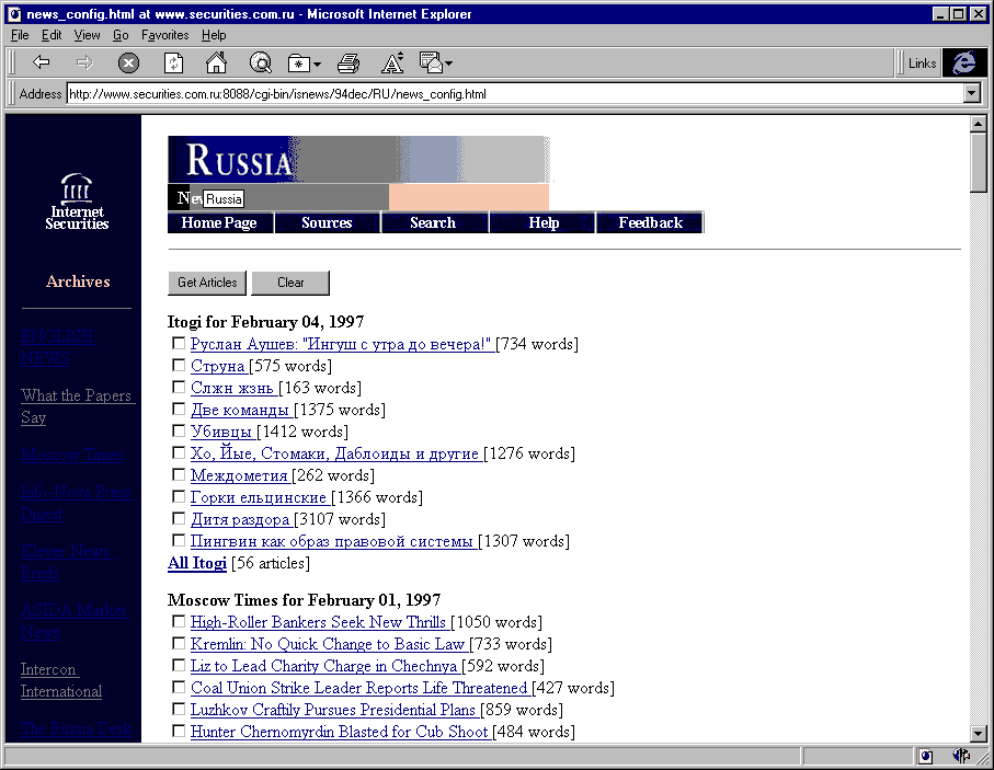 На рис. 3 (~26k) представлен вид экрана с новостями. Справа