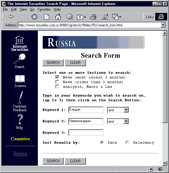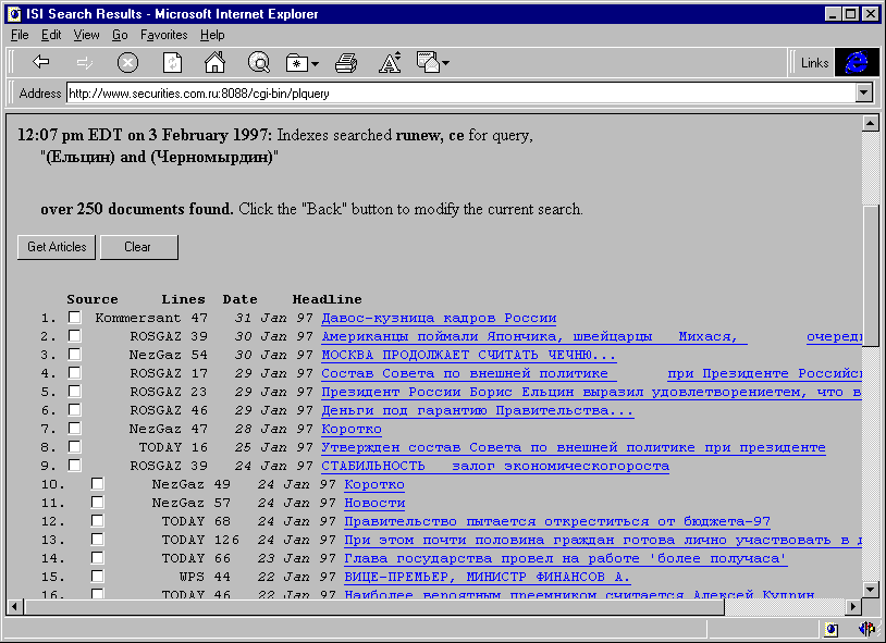 слово "Ельцин", и рис. 6 (~19k) - результаты данного поиска.