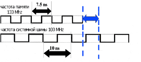 Рисунок 10 Если тактовая частота памяти и тактовая частота системной шины не могут быть соотнесены как целые числа возникают штрафные задержки на их синхронизацию.