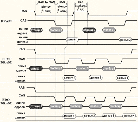 В микросхемах памяти, выпускаемых вплоть до середины девяностых, все три задержки (RAS to CAS Delay, CAS Delay и RAS precharge) в сумме составляли порядка 200 нс., что соответствовало двум тактам в 10 мегагерцовой системе и, соответственно, двенадцати - в 60 мегагерцовой. С появлением Intel Pentium 60 (1993 год) и Intel 486DX4 100 (1994 год) возникла потребность в совершенствовании динамической памяти - прежнее быстродействие уже никого не устраивало.