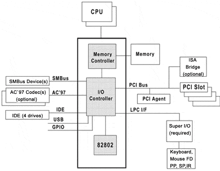 В настоящее время, такие контролеры выпускаются не в виде отдельных микросхем, а входят в состав чипсета (см. рис. 9), поэтому, очень важно выбрать "правильный" чипсет. Чем они отличаются друг от друга, или на какие характеристики следует обращать внимание в первую очередь?