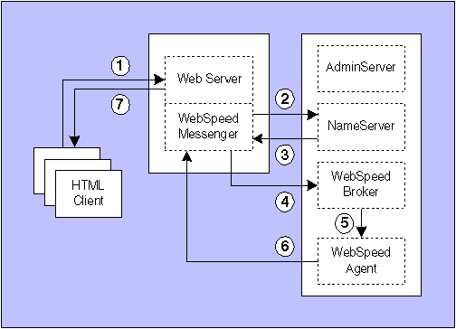 Рис. 7. Механизм работы WebSpeed Transaction Server. 2. Процесс WebSpeed Messenger, который является или CGI-программой, или ISAPI-, или NSAPI- процессом (в зависимости от Web-сервера и конфигурации), посылает запрос к серверу имен (NameServer) доступного WebSpeed Transaction Server, который поддерживает требуемый прикладной сервис. 3. Сервер имен выбирает WebSpeed Transaction Server, который поддерживает требуемый прикладной сервис, из своего пула и уведомляет процесс WebSpeed Messenger, который использует Transaction Server. 4. Процесс WebSpeed Messenger передает запрос HTML-клиента WebSpeed Transaction Server, идентифицированный сервером имен. 5. Процесс WebSpeed Brocker (в выбранном WebSpeed Transaction Server) выбирает доступного WebSpeed Agent из пула агентов. 6. Процесс WebSpeed Agent выполняет запрос HTML-клиента и создает HTML-страницу, которая возвращается WebSpeed Messenger. 7. Процесс WebSpeed Messenger передает HTML-страницу на Web-сервер, который, в свою очередь, адресует ее HTML-клиенту по протоколу TCP/IP. Все компоненты: Web-сервер, WebSpeed Messenger, WebSpeed Brocker, WebSpeed Agent и NameServer, - могут размещаться как вместе на одной машине, так и распределены (правда, с некоторыми ограничениями) по разным. На Рис. 8 представлена одна из возможных конфигураций, при которой Web-сервер и WebSpeed Messenger установлены на одном компьютере, а остальные компоненты - на другом. ЗаключениеВ настоящее время программная система VERTEX APPAREL находится в стадии промышленной эксплуатации в ряде компаний США и Мексики (Ellen Tracy, Donna Karan, Liverpool), занимающихся разработкой моделей одежды, производством и продажей готовой продукции. Опыт сопровождения системы показал, что значительный экономический эффект может быть получен только за счет грамотного управления в интегрированной информационной среде: своевременной координации усилий нескольких отделов или предприятий, связанных в одну технологическую цепочку производства одежды. Система позволяет упорядочить процесс управления средним или крупным быстрорастущим производственным организмом, объединив в едином информационном пространстве все его разрозненные компоненты. Можно предположить, что система вызовет интерес и у российских компаний, ориентированных на развитие собственного швейного бизнеса с учетом современных тенденций в мировой экономике и использованием новых информационных технологий. ЛИТЕРАТУРА1. Евтюшкин А. "На пути из Детройта в Голливуд". "eCommerce World", #04 / 2000. 2. Левин А., Судов Е., "CALS - сопровождение жизненного цикла". "Открытые системы", № 3, 2001. 3. Богатиков С., Долидзе С., Слободчиков А. "Технологии PDM на крыльях "Туполева". "Открытые системы", № 9, 2000. 4. Дубова Н. "Системы управления производственной информацией". "Открытые системы", № 3, 1996. 5. Жирков А., Колчин А., Овсяников М., Сумароков С. "Что такое PDM?". "PCWEEK", № 38(308), 2001. 6. Краюшкин В. "Современный рынок систем PDM". "Открытые системы", № 9, 2000. 7. http://www.microsoft.com/rus 8. http://www.progress.com:6336/dynaweb/psdoc91c/wbspd31c/win/@Generic__BookView;cs=default;ts=default