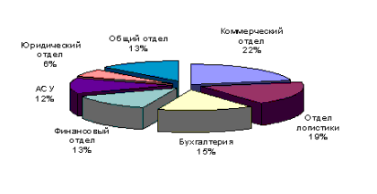 Рис. 5. Оценка трудозатрат структурных подразделений торговой компании за месяц