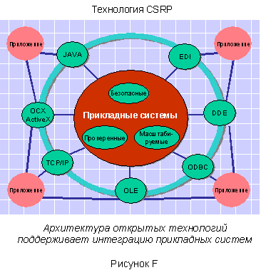 Теперь рассмотрим следующее: Тот же покупатель использует браузер Интернет для доступа к Web-серверу производителя чтобы ввести заказ - стандартный или видоизмененный - в любое время дня или ночи. Покупатель может изменить предыдущие заказы, проверить состояние еще не выполненных заказов или запросить новые возможности. Потому что такое взаимодействие интегрировано в основные бизнес-системы предприятия, деятельность по планированию, производству и/или обслуживанию покупателей может автоматически изменяться действиями покупателя. И деятельность предприятия синхронизируется с покупателем. Открытые технологии делают оба эти сценария и методологию CSRP реальностью. Как показано на рисунке F, для CSRP требуется использование открытых технологий, которые могут интегрировать стратегические приложения подразделений в масштабируемые, защищенные приложения масштаба предприятия. Успешное внедрение CSRP возможно только при использовании открытых технологий. Требуется переход от закрытых систем, включая системы ERP. Создавать ценность, удовлетворяющую потребности покупателя - быть ему необходимымЭто окупится! Организация имеет оптимизированную деятельность, интегрировала покупателя и внедрила архитектуру открытых технологий. Подразделения, ориентированные на покупателя, интегрированы в сердце системы планирования бизнесом. Давайте вернемся к вопросам, поставленным в начале статьи: Можете ли Вы ...