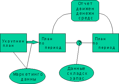 Обратите внимание, что в линейном списке Крепеж встречается только один раз, так как заказ на крепеж должен формироваться единым образом (для однородного крепежа разумеется). В результате описанные выше проблемы управления запасами стали на порядок сложнее, так как кроме окончательных комплектующих, они стали относиться и к сборкам, которые, в свою очередь могли производиться в ходе "единого" сборочного процесса, могли производиться на вспомогательных производствах (то есть с промежуточным складированием "незавершенки" или "сборок"), а могли - на основе субподряда "на стороне", причем одна и та же "сборка" или узел, например двигатель, может как заказываться, так и производиться . При этом требования к точности соблюдения сроков поставки такого рода компонент стали на порядок выше, чем ранее для "простых" комплектующих. В результате возникла методология планирования производств (в основном сборочных или "дискретных"), которая была призвана решить проблему формирования заказа на комплектующие и "сборки" (узлы) опираясь на данные (потребности) обьемно-календарного плана производства. Она получила название MRP. Достаточно быстро и вполне естественно аналогичная методология была разработана и для планирования производственных мощностей, получив название CRP. Правда уровень сложности данной задачи существенно выше чем MRP, так как станки могут переналаживаться и использоваться для производства различных операций, кроме того на различных станках может выполнять операции один рабочий, соответственно, кроме "машинного времени" существенно значение имеет и "рабочее время", опять же существуют графики сменности, перерывы и т.д.. В массе простых систем CRP, однако эти тонкости не учитываются, так как обычно производство имеет некоторый "задел" по мощности, что "сглаживает" проблемы. Для более критичных процессов были разработаны специализированные системы планирования, учитывающие особенности загрузки рабочих центров и ограниченную их мощность, об этом ниже. Объединенная система планирования MRP-CRP получила название MRP II. Индекс П подчеркивает "второй уровень" данной методологии, по сравнению с MRP. Действительно, совместное планирование материальных потоков и производственных мощностей позволяет поднять всю систему планирования на новый уровень, так как удается определить финансовые результаты сформированного производственного плана весьма точно, что невозможно при "частичном" планировании (то есть становится возможно сравнить плановые поступления от продаж с необходимыми для организации производства прямыми затратами, необходимые косвенные затраты при этом считаются обеспеченными). Это важнейшее достижение методологии MRP II, которое и привело к ее "всемирной известности". Заметим. что при финансовом анализе, проводимом в рамках MRP II, не учитывается косвенные затраты (накладные расходы), чисто финансовые затраты, например, инвестиционные платежи, и такой важный планово-финансовый параметр как конкретный график (диаграмма) финансовых потоков (cash-flow diagram), единственное, что подлежит анализу - общий "прямой" финансовый результат производственной программы за планировочный период. Но, учитывая, что при использовании программных продуктов, планировочный период может быть доведен до недели - это уже совсем неплохо. Применяя некоторые 