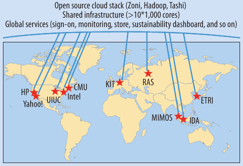 Объявленной темой апрельского номера в этом году является «Экономика и облачная инфраструктура». Однако, на мой взгляд, тематическую подборку нельзя назвать полноценной: отсутствует приглашенный редактор, да и в подборке всего три статьи. Тем не менее, начну со статей, имеющих отношение к теме номера. Первая статья – «Open Cirrus: Всемирный испытательный стенд облачного компьютинга» («Open Cirrus: A Global Cloud Computing Testbed») – прежде всего, замечательна тем, что исключительно длинный список ее авторов (всего в нем 18 человек) возглавляет Арутюн Аветисян (Arutyun I. Avetisyan, Institute for System Programming of the Russian Academy of Sciences), ученый секретарь Института системного программирования РАН, мой коллега и товарищ. Но статья это вовсе не российская, а вполне интернациональная: среди авторов люди из компаний Hewlett-Packard, Intel, университетов США и Германии, организаций Сингапура, Малайзии и Кореи. В сообществах систем и приложений растет интерес к облачному компьютингу (cloud computing). Однако исследователям в области систем часто оказывается трудно достигать надежных результатов без доступа к крупномасштабным распределенным центрам данных. Исследователям в области приложений тоже было бы полезно иметь возможность контролировать размещение и использование услуг на основе применения распределенного испытательного стенда облачного компьютинга. Коммунальные компьютерные службы с оплатой услуг по мере их потребления, поддерживаемые, например, компанией Amazon, и новые инициативы компаний Google, IBM, Microsoft и Национального научного фонда США (National Science Foundation, NSF) начали предоставлять доступ к крупномасштабным кластерным ресурсам исследователям приложений в областях машинного обучения и научных вычислений. Однако у исследователей систем, разрабатывающих методы и программную инфраструктуру облачного компьютинга по-прежнему имеются проблемы при получении низкоуровневого доступа к таким ресурсам. Open Cirrus позволяет решить эту проблему, предоставляя единый испытательный стенд, состоящий из неоднородных распределенных центров данных, исследователям и разработчикам коммерческих и свободно доступных системы, приложений и служб. Проект спонсируется Hewlett-Packard (HP), Intel, Yahoo! iи NSF, и в нем принимают участие американские университеты Illinois at Urbana-Champaign (UIUC) и Carnegie Mellon (CMU), немецкий Karlsruhe Institute of Technology (KIT), сингапурская организация Infocomm Development Authority (IDA), южнокорейский Electronics and Telecommunications Research Institute (ETRI), малайзийский Institute of Microelectronic Systems (MIMOS), а также Российская академия наук, представленная Институтом системного программирования. В 2010 г. ожидается присоединение к Open Cirrus новых членов.