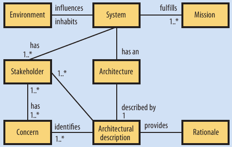 К решению этих проблем лучше всего подступаться с использованием некоторой комбинации методов и технологий. В статье обсуждаются эволюция встраиваемых систем в разных временных шкалах и в контексте пользовательских процессов, верификация систем во время их загрузки и тестирование с целью проверки их корректности. Целью статьи является обзор актуальных проблем встраиваемых систем и обсуждение некоторых возможных решений. Авторами статьи «Эволюционирующие описания программной архитектуры критических систем» («Evolving Software Architecture Descriptions of Critical Systems») являются Том Менс, Джеф Меджи и Бернхард Румпе (Tom Mens, Université de Mons, Belgium, Jeff Magee, Imperial College London, UK, Bernhard Rumpe, RWTH Aachen University, Germany). Преимущественно программные системы, будь то встраиваемые системы или системы обработки информации, ставят перед заинтересованными в них лицам серьезные проблемы. Система может быть критически важной для некоторой компании, так что, если система не будет функционировать должным, компания сможет утратить свои конкурентные преимущества или даже вообще перестать существовать. Система может быть критической по отношению к ресурсам – времени, аппаратным средствам, обслуживающему персоналу или любому другому ресурсу, на наличие которого она рассчитана. Недоступность или неисправность этих ресурсов может привести к отказу системы. Система может быть критической в более традиционном смысле – обладать некоторыми нефункциональными характеристиками, которые должны постоянно удовлетворяться. Например, финансовые системы критичны по отношению к безопасности, а атомные электростанции, медицинские приложения и приложения общественного транспорта критичны по отношению к надежности, поскольку от их работоспособности зависят жизни людей. Надежную основу для документирования подобных проблем обеспечивают архитектуры программного обеспечения. В стандарте IEEE 1471-2000, который также стал международным стандартом ISO/IEC 42010:2007, рекомендуется обеспечивать архитектурные описания преимущественно программных систем, чтобы можно было справляться с их возрастающей сложностью и уменьшать риски, возникающие при конструировании и развитии этих систем. Как показывает рисунок, в соответствии с этим стандартом, каждая система выполняет в среде своего обитания некоторую конкретную миссию, и имеется одно или несколько заинтересованных лиц, у которых имеются проблемы, связанные с этой системой или ее миссией. Проблемы определяются как «потребности, которые влияют на разработку системы, ее функционирование или другие аспекты, являющиеся критическими или важными в некотором другом отношении для одного или нескольких заинтересованных лиц». К проблемам времени выполнения относятся производительность, надежность, безопасность и т.д.; основные проблемы разработки связаны с сопровождением, в частности, с обеспечением эволюционирования.