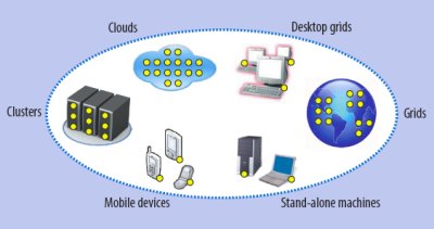 Практическая распределенная система «в худшем случае», состоящая из кластеров, grid’ов, «облаков», а также включающая grid’вы десктопов, отдельные машины и мобильные устройства. Кластеры, grid’ы и «облака» являются хорошо организованными подсистемами с собственным промежуточным программным обеспечением, программными интерфейсами, политиками доступа и механизмами защиты. Заранее непредусмотренный набор вычислительных ресурсов, общающихся посредством некоторого сетевого соединения, образует практическую распределенную систему. Известно, что создание приложений для таких систем затруднительно, поскольку программисты должны учитывать возможность проблем, упомянутых ранее. Настолько же затруднительно и развертывание приложений, поскольку в каждом компоненте системы имеются свое промежуточное программное обеспечение и политики доступа. Применение высокопроизводительного распределенного компьютинга можно упростить, если суметь абстрагироваться от этих сложностей за счет наличия одной программной системы, пригодной для использования в любой распределенной системе. По существу, такая система должна обеспечивать две логически независимых подсистемы: систему программирования, обладающую функциональными возможностями, которые традиционно ассоциируются с языками программирования и коммуникационными библиотеками, и систему развертывания, обладающую функциональными возможностями, которые ассоциируются с операционными системами. Система программирования должна позволять разрабатывать приложения, являющиеся не только эффективными, но и устойчивыми к сбоям. В ней должна поддерживаться модель программирования, поддерживающая отказоустойчивость и пластичность (возможность выдерживать динамическое появление и исчезновение машин), а также автоматически разрешающая любые проблемы связности. Система развертывания должна облегчать развертывание приложений и управление ими независимо от того, где они выполняются. Она также должна обеспечивать возможности распределенного управления файлами, аутентификации пользователей, управления ресурсами и взаимодействия разных систем промежуточного программного обеспечения. Чтобы соответствовать потребностям разных пользователей, от разработчиков прикладного и системного программного обеспечения до пользователей приложений, такая система должна иметь многоуровневую архитектуру. Интерфейсы программирования должны определяться на разных уровнях, каждый из которых соответствует потребностям определенной категории пользователей. Исследователи во всем мире активно изучают средства и механизмы высокопроизводительных и распределенных вычислений, но ни одна из существующих программных систем не обеспечивает полный спектр требуемых возможностей. Проект Ibis направлен на устранение этого изъяна, обеспечивая интегрированную систему, основанную на простой, ориентированной на пользователей философии: практические распределенные приложения должны разрабатываться и компилироваться на локальной рабочей станции, а потом развертываться в некоторой распределенной системе. В Ibis используется технология виртуальных машин Java, что позволяет приложениям выполняться в неоднородной среде. Архитектура Ibis основывается на подходе «двух подсистем». Система программиров