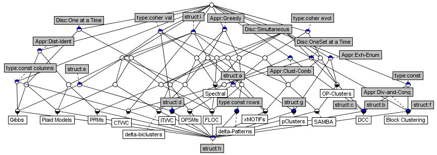 Теперь, когда четко выделены основания для классификации алгоритмов бикластеризации, построим их таксономию.