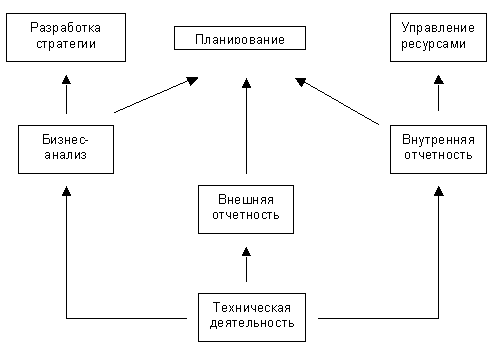 Рис.1. Упрощенная схема основных информационных потоков между 7 видами деятельности организации согласно модели использования данных.