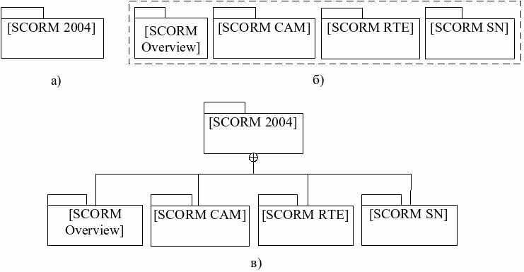 б) набором моделей, соответствующих частям (книгам) SCORM;