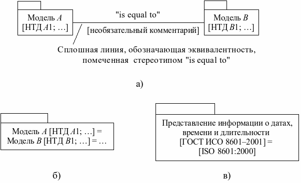 а) обозначение связи между пакетами (модели