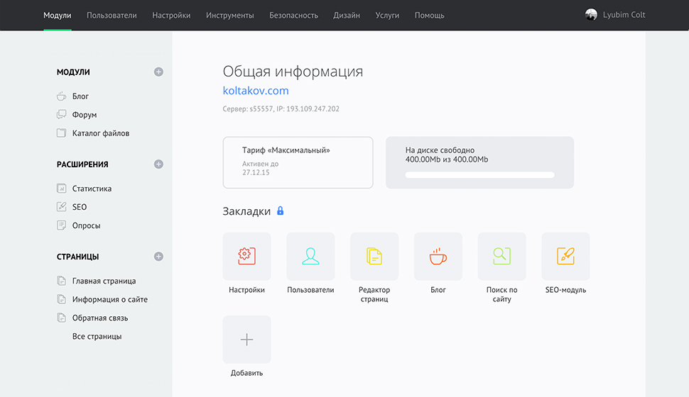 Обобщим вышесказанное: в uCoz можно делать хорошие сайты, ничего не заплатив. При желании получить больше 400 Мб места на диске, мобильный шаблон, PHP-скрипты, SEO-модуль, премиум техподдержку, а также продвинутый антивирус можно будет и заплатить. Цены не кусаются, являясь одними из самых низких на рынке. Тем более, в первые часы после активации сайта можно получить 50% скидку на любой тариф, кроме «Минимального». Но это необязательно. Срок действия Free-аккаунта неограничен – пользуйтесь сколь угодно долго. Возможности uCozСистема построена по модульному принципу. Каждая отдельная часть её функционала выделена в отдельный модуль (магазин, блог, форум, галерея, каталог статей/файлов, новости, формы, опросы и т. д.) с весьма детализированными настройками. То есть на выходе мы получаем не просто скопище каким-то образом сгруппированных опций, а чёткое разграничение возможностей. Модули можно подключать или отключать в любое время.