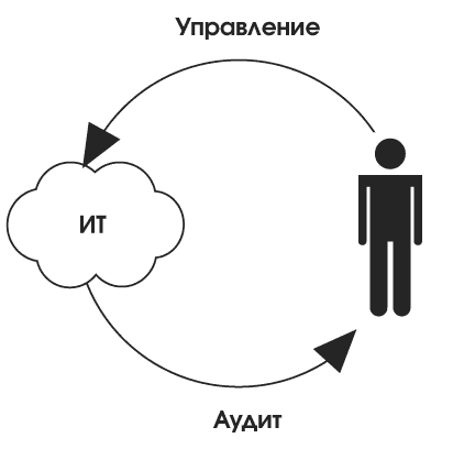 Как следует из названия — это две части одного целого (оказание воздействия и контроль результатов). Управляем — воздействуем на ИТ для достижения поставленных целей. Аудит — контролируем достижение цели.