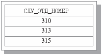 Результат операции PROJECT СЛУЖАЩИЕ_В_ПРОЕКТЕ_1 {СЛУ_ОТД_НОМ} (в каких отделах работают служащие, данные о которых содержатся в отношении СЛУЖАЩИЕ_В_ПРОЕКТЕ_1?) показан на рис. 4.6.
