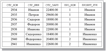 Рис. 7.1. Пример возможного тела отношения СЛУЖАЩИЕ_ПРОЕКТЫ
