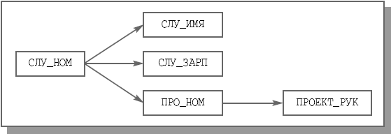 Например, в отношении СЛУЖАЩИЕ_ПРОЕКТЫ выполняются FD СЛУ_НОМ