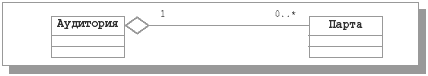 Обычная ассоциация между двумя классами характеризует связь между равноправными сущностями: оба класса находятся на одном концептуальном уровне. Но иногда в диаграмме классов требуется отразить тот факт, что ассоциация между двумя классами имеет специальный вид «часть-целое». В этом случае класс «целое» имеет более высокий концептуальный уровень, чем класс «часть». Ассоциация такого рода называется агрегатной. Графически агрегатные ассоциации изображаются в виде простой ассоциации с незакрашенным ромбом на стороне класса-«целого». Простой пример агрегатной ассоциации показан на рис. 11.10.