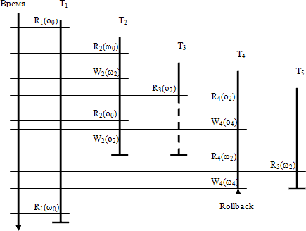 алгоритма MVTO лучше всего иллюстрируются поведением транзакций