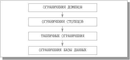 Успешное выполнение оператора приводит к тому, что указанная базовая таблица перестает существовать. Уничтожаются все ее строки, определения столбцов и табличные определения целостности. При наличии спецификации 16.3. Средства определения и отмены общих ограничений целостностиВиды ограничений целостности, с которыми мы имели дело в предыдущих разделах этой лекции, образуют иерархию (рис. 16.2).