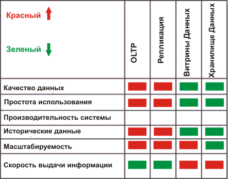 Рис. 5. Характеристики различных архитектур отчетности В наше время более чем когда-либо требуются качественные и гибкие средства отчетности. Компаниям необходима архитектура, позволяющая эффективно использовать данные для принятия сложных решений. И, несмотря на широкий выбор средств, наиболее надежным способом достижения этой цели является реализация Хранилища данных. Расширяющиеся компании используют все новые и новые источники данных, а поэтому именно основательная инфраструктура Хранилища - это оптимальное средство для поддержки принятия решений. |