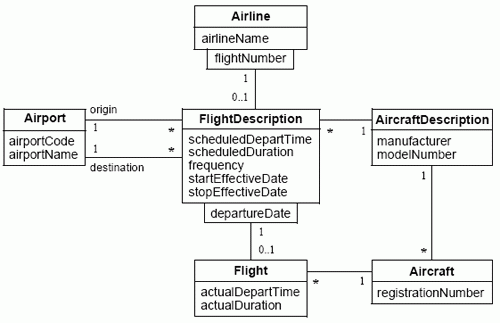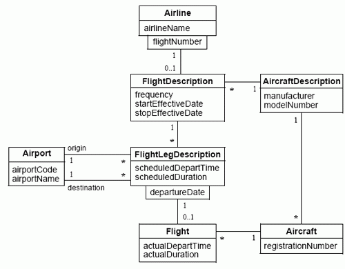 Модель позволяет отвечать на запросы, подобные следующему: «Найти Авиалинию, выполняющую рейсы на указанном Самолете». Инкапсуляция привела бы к следующей последовательности вызовов методов. (Заметим, что единственным осмысленным путем является Aircraft.Flight.FlightDescription.Airline.)