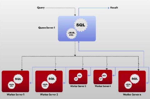 Рис. 2. Совместное выполнение SQL-запросов и SQL/MapReduce-функций в nCluster В Aster Data для обеспечения механизма естественно распараллеливаемых UDF разработана инфраструктура SQL/MapReduce, поддерживаемая внутри SQL-ориентированной массивно-параллельной СУБД nCluster (см. рис. 2, позаимствованный из [47]). Организация среды SQL/MapReduce обеспечивает следующие возможности: