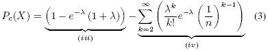 Здесь X – это случайная переменная, соответствующая числу обновлений одной и той же записи в течение интервала кэширования CI. P(X > 1) – это вероятность того, что в течение интервала кэширования CI произойдет более одного обновления одной и той же записи. Однако конфликт может возникнуть только в том случае, когда эти обновления производятся на разных серверах. Поэтому в части (ii) правой части соотношения вычисляется вероятность того, что обновления будут произведены в одном и том же сервере, и полученное значение вычитается из вероятности того, чтобы было произведено более чем одно обновление. В соотношении не учитывается вероятность возникновения двойного конфликта для одной и той же записи. Это связано с тем, что мы предполагаем наличие возможности распознавать и устранять конфликты (например, просто путем отбрасывания конфликтующих обновлений), а также считаем пренебрежимо малой вероятность возникновения двух конфликтов для одной и той же записи за время, которое требуется для обнаружения конфликта (например, время интервала кэширования). Как и в [30], мы предполагаем, что поступление транзакций в систему является пуассоновским процессом, и это позволяет нам переписать соотношение (1) с использованием средней скорости потока (mean arrival rate) λ. Для пуассоновского распределения функция плотности вероятности (probability density function, PDF) задается соотношением