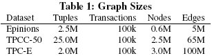 На всех стадиях работы нашей системы, за исключением фазы разделения графа, производительность, по существу, не зависит от числа разделов и линейно возрастает в зависимости от размеров базы данных и трассы рабочей нагрузки. Поэтому чтобы продемонстрировать масштабируемость мы фокусируемся на производительности фазы разделения графа. Для этого эксперимента мы использовали три графа, характеристики которых приведены в табл. 1.