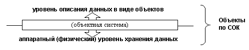 Сразу надо отметить, что фактически в СОК речь идет о разных уровнях моделирования. В первой части говориться о концептуальной модели (концептуальный уровень). В этой модели предметной областью являются сущности реального мира, т.е. под объектом подразумевается набор данных описывающий некоторую сущность (будем называть такой набор данных концептуальным объектом). Вторая и третья часть ОК объясняет организацию данных, то есть по сути дела рассказывает о логической модели (логический уровень). Предметной область в этом случае являются данные, а под объектом подразумевают упорядоченный, определенным образом организованный набор данных (назовем его логический объект). Заметим также, что в СОК неявно проходят два на первый взгляд очень схожих утверждения. Первое относится к концептуальному уровню. Отталкиваясь от мысли, что в реальном мире всё существует в виде сущностей, СОК декларирует, что вся информация о реальном мире должна быть представлена как набор информационных объектов. Второе, относящееся к логическому уровню, говорит, что любая типизированная переменная является объектом, поскольку все, в том числе и примитивные, типы являются классами. Это утверждение гораздо строже первого - если оно выполняется, то первое также будет обязательно истинным. Обратное же неверно - если предположить, что атрибут объекта сам объектом не является (т.е. второе утверждение - ложь), то первое останется истинным, поскольку информация содержащаяся в атрибуте по-прежнему будет частью информации описывающей объект. Концептуальный и логический уровень объектной концепции очень близки, поскольку оба они используют абстракцию называемую "объект", и именно эта близость делает легким переход от концептуального моделирования к логическому. Однако эта же близость мешает понять, что, по сути, разговор идет все же о разных уровнях моделирования. Ограничения же, существующие в СОК, не позволяют добиться полной идентичности концептуального и логического уровней. Замечание. Такую идентичность можно рассматривать как одну из основных целей развития систем моделирования данных. Речь идет о случае, когда концептуальную модель, возникшую в результате анализа предметной области, можно рассматривать сразу же как логическую схему данных, т.е. описание организации данных в информационной системе. С этой точки зрения любое различие между концептуальной и логической моделями является недопустимым. Отметим особо, что процесс моделирования движется от концептуального уровня к логическому, от описания сущностей моделируемой предметной области к создание схемы данных реализующей это описание в рамках логической модели данных. Проблема заключается в том, что существующие логические модели данных (реляционная и "объектные") в силу своей ограниченности являются невыразительными и не позволяют создавать схемы данных, адекватно отписывающие предметную область. В чем же заключается ограниченность СОК? Рассмотрим следующий пример. Пусть существует класс Cars описывающий транспортные средства и пусть у него определен метод getWeight возвращающий вес транспортного средства. Для хранения информации о весе используется атрибут weight предопределенного типа float.