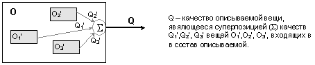 Способность описываемой вещи к определенному взаимодействию с другими вещами определяется соответствующими способностями вещей, которые составляют (в самом общем смысле этого слова) описываемую. Исходя из этого, любое качество можно рассматривать как суперпозицию (обобщение) многих качеств.