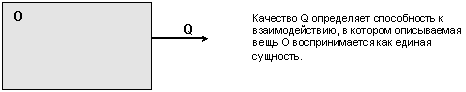 Однако для того, что бы описать способность вещи к взаимодействию мы не должны определять первопричину этой способности и описывать реальную структуру вещи. Достаточно сказать, вещь обладает такой способностью к взаимодействию, то есть определенным качеством.