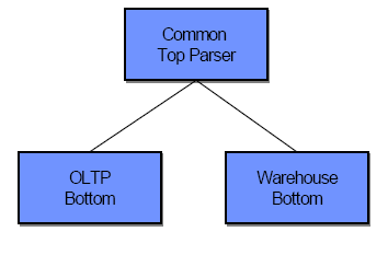 Кроме того, в хранилище данных хранятся таблицы измерений, содержащие информацию о каждом магазине, каждом покупателе, каждом продукте и каждом промежутке времени. В действительности, в таблице фактов содержится внешний ключ для каждого из этих измерений, и естественным результатом является схема «звезда». Такие звездообразные схемы повсеместны в средах хранилищ данных, но они практически не встречаются в средах OLTP. Хорошо известно, что приложения хранилищ данных лучше работают при использовании битовых (bit-map) индексов, в то время как пользователи OLTP-приложений предпочитают индексы на основе B-деревьев. Причины очень просты: битовые индексы являются более компактными и быстрее работают в условиях рабочей нагрузки, свойственной хранилищам данных, но не могут хорошо работать в средах OLTP. В результате многие поставщики поддерживают в своих продуктах СУБД и индексы на основе B-деревьев, и битовые индексы. Кроме того, в мире хранилищ данных полезная тактика оптимизации основывается на материализованных представлениях, но они никогда не используются в мире OLTP. В средах OLTP широко распространены обычные («виртуальные») представления. В первом приближении можно сказать, что у большинства поставщиков имеется одна СУБД, поддерживающая хранилища данных (битовые индексы, материализованные представления, звездообразные схемы и тактики оптимизации в расчете на запросы к звездообразным схемам), и другая СУБД, поддерживающая оперативную обработку транзакций (индексы на основе B-деревьев и стандартный оценочный оптимизатор), объединяемые общим языковым интерфейсом, как это показано на рис. 2.