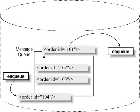 Итак, используя этот сервис, мы обнаружили, что, чтобы действительно отправиться в сердце XML страны, нам необходимо полететь в Qantas. Обработка асинхронных XML-сообщений в очередях Обрабатываете ли вы банковских клиентов в диалоговом окне или заказы покупателей на Web сайте, и теория, и практика утверждают, что очереди – это оптимальный подход к обработке заданий. Очереди позволяют заданиям накапливаться упорядоченным образом, и позволяют гибкому количеству исполнителей обрабатывать задания так быстро как это возможно. В часы пик больше исполнителей могут быть привлечены к работе. В свободное время, дежурная команда может удерживать фронт. В нашем сценарии очереди заданий обрабатываются очередью Oracle Advanced Queueing, чье содержимое управляется таблицей очередей, а исполнители – это программы, которые выводят из очереди сообщения и обрабатывают их. Поскольку возможности Oracle's AQ в значительной степени поддерживаются базой данных Oracle8i, сообщения, которые вы помещаете в очередь имеют точно такие же гарантии надежности, как и все данные базы данных. Проще говоря, это означает, что сообщения надежно доставляются и никогда не будут потеряны. Oracle AQ обрабатывает даже автоматическую передачу сообщений между очередями на разных машинах и между различными системами очередей. Итак, должно быть понятно, что стоит потратить время, чтобы разобраться, как воспользоваться такой мощной возможностью для асинхронного обмена XML-сообщениями. Рисунок 3 иллюстрирует основную идею очередей в базе данных. Один или несколько процессов ставят задание, которое должно быть сделано, в очередь, а другие рабочие процессы извлекают сообщение из очереди для обработки. По умолчанию используется интуитивно “справедливый” механизм – первый вошел, первый вышел (FIFO) – но AQ поддерживает также многие другие методы обслуживания очереди. Простым примером может быть обслуживание сначала высоко приоритетных заказов, или заказов от платиновых клиентов.