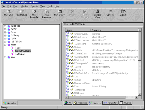 Рис.5. Cache' Architect. Утилита Cache' Architect предназначена для работы с классами Cache'. Разработчику предоставляется ряд мастеров (wizard), для создания новых и редактирования параметров существующих классов, методов, свойств и др. компонент классов Cache'. Внешний вид утилиты Cache' Architect приведен на рис.5. Для доступа к многомерным структурам ядра СУБД Cache' можно воспользоваться утилитой Cache' Explorer. Утилита Cache' Explorer предоставляет ряд интерфейсов для просмотра, импорта/экспорта, печати на принтер и др. глобалей, классов Cache', программ Cache'. Внешний вид утилиты приведен на рис. 6.