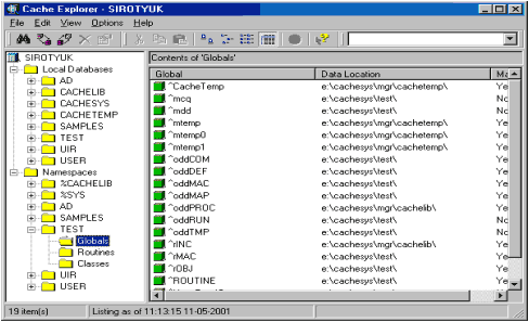 Рис.6. Cache' Explorer. Cache' Server Pages (CSP).Основой концепции серверных страниц Cache' является автоматическое создание по запросу пользователя web-страниц, содержащих требуемую информацию из БД Cache'. Как видно из рис. 7., вся бизнес-логика CSP-приложений выполняется в непосредственной близости к хранилищу данных Cache', таким образом сокращается объем данных, которыми обмениваются web-сервер и сервер БД Cache', что приводит к выигрышу в производительности по сравнению с другими технологиями создания web-приложений. Для еще большего увеличения производительности CSP приложений при обмене данными между сервером Cache' и web-сервером используются высокоскоростные интерфейсы API.