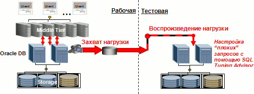 Рис. 3. Oracle Real Application Testing 5. Совершенствование архитектур максимальной доступностиТребования к непрерывности работы СУБД при любых видах сбоев и регламентных работ постоянно повышаются. Существует целый набор решений, которые все вместе реализуют архитектуру максимальной доступности. Это и кластеры, и возможность автоматического перезапуска СУБД на другом сервере, и создание резервных вычислительных центров (Standby). Все эти решения будут развиваться и совершенствоваться, обеспечивая и быструю синхронизацию узлов, и минимальное время переключения, и возможность синхронной/асинхронной синхронизации узлов, и возможность установки времени задержки синхронизации (чтобы успеть перехватить ошибки), и возможность отката баз, транзакций, операций DDL для борьбы с человеческими ошибками. Особо хочется отметить тенденцию к более полному использованию возможностей резервной БД. Сегодня у большинства производителей она постоянно догоняет основную БД и используется только тогда, когда основная БД выйдет из строя. Это замораживает инвестиции в оборудование и не дает гарантии того, что, когда сбой наконец произойдет, переключение будет успешным. Поэтому производители начинают реализовывать механизм быстрого переключения основная–резервная и резервная–основная БД, чтобы этот механизм можно было легко и часто использовать при выполнении регламентных работ и для поэтапного апгрейда СУБД без остановки ее работы. Кроме того, появляются механизмы открытия резервной БД на чтение в то время, как она догоняет основную. Это позволяет разгрузить производственную системы, вынеся на резервную БД операции построения отчетности, анализа, backup. Также резервную БД можно переводить в режим тестирования и использовать для тестирования изменений. После окончания тестирования она возвращается в режим резервной БД и продолжает догонять основную БД. Это тем более удобно, что можно одновременно иметь несколько standby баз, иногда даже в разных городах. Сегодня большинство сложных, ресурсоемких операций по изменению структуры БД или параметров работы СУБД может производиться online, в фоновом режиме. Т.е. изменение структуры таблиц и индексов, перемещение объектов не приводит к замедлению работы с этими объектами. Online патчи позволят модифицировать ПО без остановки работы системы. В ближайшее время будет реализован и механизм версионности приложений БД, когда в БД существует несколько различных версий одной и той же процедуры, функции, таблицы, пакета, view и т.д. Это позволит на какое-то время обеспечить одновременную работу с базой двух разных версий приложения с плавным переключением со старой версии на новую. Таким образом, апгрейд приложений БД и версий БД станет еще более быстрым и безболезненным. 6. Включение измерения времени в СУБДДля борьбы с человеческими ошибками, аудита, а также для восстановления старых версий данных и отчетов (что диктуется нормативными требованиями), надо иметь в СУБД штатную возможность откатываться в прошлое по оси времени, т.е. заказывать отчеты или запросы на текущем состоянии БД такими, какими они были на момент времени в прошлом. Часто требуется быстро и просто откатить всю базу, отдельные транзакции в прошлое или восстановить удаленные объекты БД и ошибочно измененные пользователем данные. Иногда надо посмотрет