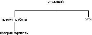 дети) Рисунок 3(a). Ненормализованное множество служащий' (номер_служащего, имя, дата_рождения) Рисунок 3(б). Нормализованное множество Нормализация выполняется следующим образом. Начиная с отношения, находящегося наверху дерева, взять его Первичный Ключ, и каждое непосредственно подчиненное отношение расширить путем вставки домена или комбинации доменов этого Первичного Ключа. Первичный Ключ каждого расширенного таким образом отношения состоит из Первичного Ключа, который был у этого отношения до расширения и добавленного Первичного Ключа родительского отношения. После этого из родительского отношения вычеркиваются все непростые домены, удаляется верхний узел дерева, и эта же процедура повторяется для каждого из оставшихся поддеревьев. Результатом нормализации набора отношений, приведенного на рис.3(а), является набор отношений, показанный на рис.3(б). Первичный Ключ каждого отношения выделен курсивом, чтобы показать, как такие ключи расширяются в процессе нормализации. Чтобы можно было применить описанную нормализации, ненормализованный набор отношений должен удовлетворять следующим условиям: