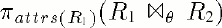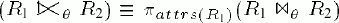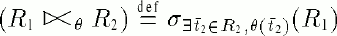 где Θ(t2) обозначает предикат Θ, в котором имена атрибутов из R2 заменены их значениями из кортежа t2. Определение Θ-полусоединения сохраняет семантику семантику мультимножеств, т.е. кратность каждого кортежа, присутствующего в результате, совпадает с кратностью этого кортежа в R1. Например, если отношение R1(A,B) является мультимножеством кортежей {(1,2), (1,2), (1,4), и R2(C,D) состоит из {(3,5), (3,6), (3,7)}, то R1 ⊳<C≥D R2 = {(1,2), (1,2)}. В мультимножественной реляционной алгебре Θ-полусоединение является выводимой операцией, выражаемой через операции Θ-соединения, проекции (π) и удаления дубликатов (δ) следующим образом:4