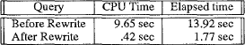 Таб. 12. Пример 5, до и после перезаписи 4. Процессор правилДля соответствия целям расширяемости проекта Sturburst было решено, что система правил является подходящей платформой, позволяющей легко добавлять к системе правила преобразований с последующим их переупорядочением и обновлением. Для наших целей не подходили существующие процессоры правил, и поэтому мы разработали собственную систему. Как будет ясно из дальнейшего обсуждения, нам требовались многочисленные возможности, недоступные в типичных системах правил (таких как OPS5 [BFKM85]). Процессор правил Query Rewrite проекта Sturburst обладает следующими особенностями: